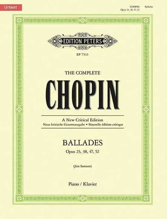 An Urtext critical edition of Chopin's Ballades, edited by Jim Samson. Composed between 1831 and 1842, Chopin's four Ballades are among the most important works in the Romantic piano literature.
