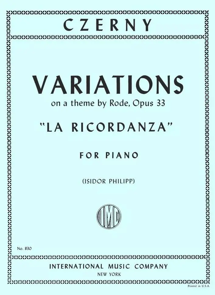 International Music Company Variations ''La Ricordanza,'' Op. 33 - Czerny - Piano - Book