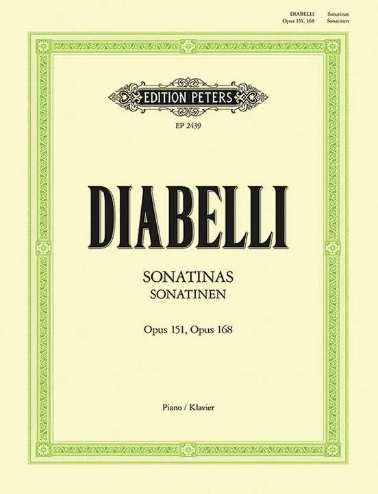 Diabelli's Sonatinas for piano (Op. 151 and 168), edited by Adolf Ruthardt. Contains 11 sonatinas ranging from intermediate to moderately difficult.