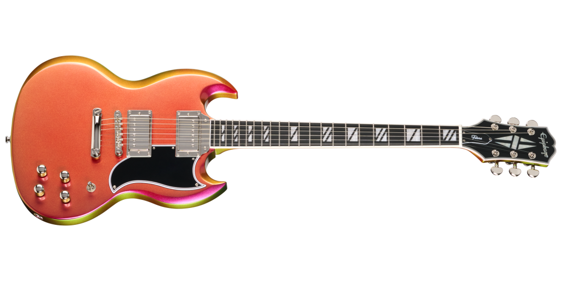 Driving the Futura SG Custom are Epiphone's new ProBucker™ Ignite humbuckers™, delivering powerful tones with clarity and definition. Push/pull controls unlock coil-splitting and phase options for expanded sonic versatility. Available in three stunning Chromashift finishes-Dragonfly Shift, Nitro Shift, and Midnight Ember Shift-this guitar is designed to turn heads on stage or on camera. Whether you want a modern aesthetic, a wide tonal palette, or an instrument that inspires creativity, the Futura SG Custom delivers. Each one ships with a premium gig bag, ready to accompany you wherever inspiration strikes.