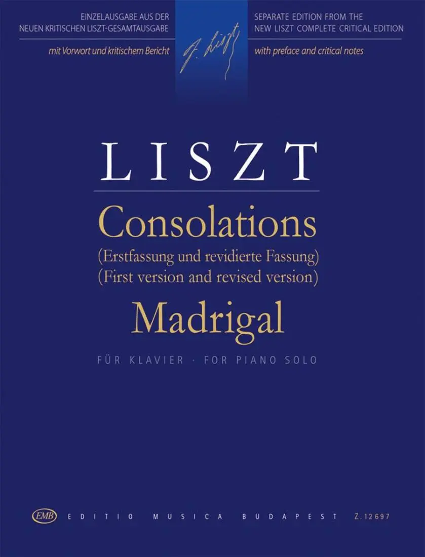 This volume features both the first version of Consolations, a cycle comprising six pieces for piano and compiled by Liszt most likely around 1848-1849, and its second, revised version. The cycle is built on a theme by the Grand Duchess of Saxe-Weimar-Eisenach, Maria Pavlovna Romanova, who invited Liszt to Weimar and spent hours studying alongside the renowned composer. Liszt dedicated the 5th piece of the cycle, Madrigal, to his friend Baron Ferdinand von Ziegesar. This individual piece was created prior to Liszt's plan of composing an entire cycle.This publication contains not only musical scores of excellent quality, but also a detailed preface in English and German as well as critical notes in English.