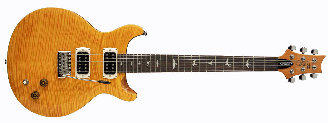 Carlos Santana's influence as a PRS artist led to the development of the SE electric guitar series, which launched in 2001. In honour of that legacy, PRS is proud to offer the SE Santana model. The SE Santana features a 24.594" scale length on a 24 fret neck, the PRS patented molded tremolo, Santana "S" humbuckers, and the same Santana body shape silhouette as Santana's revered American-made PRS models. This guitar and its appointments honour Santana's skill and style and offer players great quality and value.