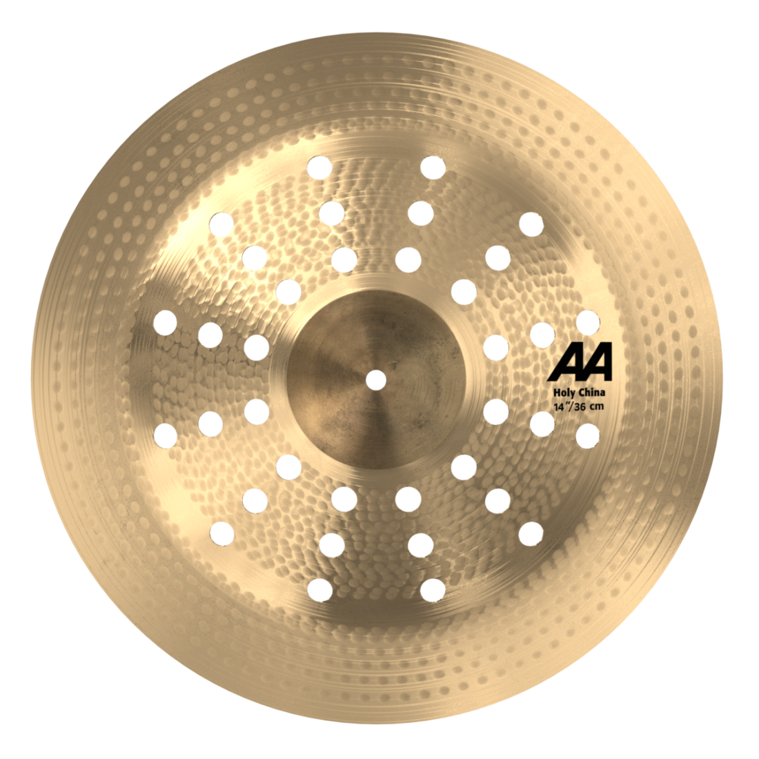 The 14" AA Holy China is a high-profile, small-format china featuring a raw bell and 12 sets of triple holes. This design delivers a loud, cutting response with a very bright tone, sharp attack, and short sustain. Despite its compact size, it offers strong projection and fast accents ideal for aggressive punctuation.