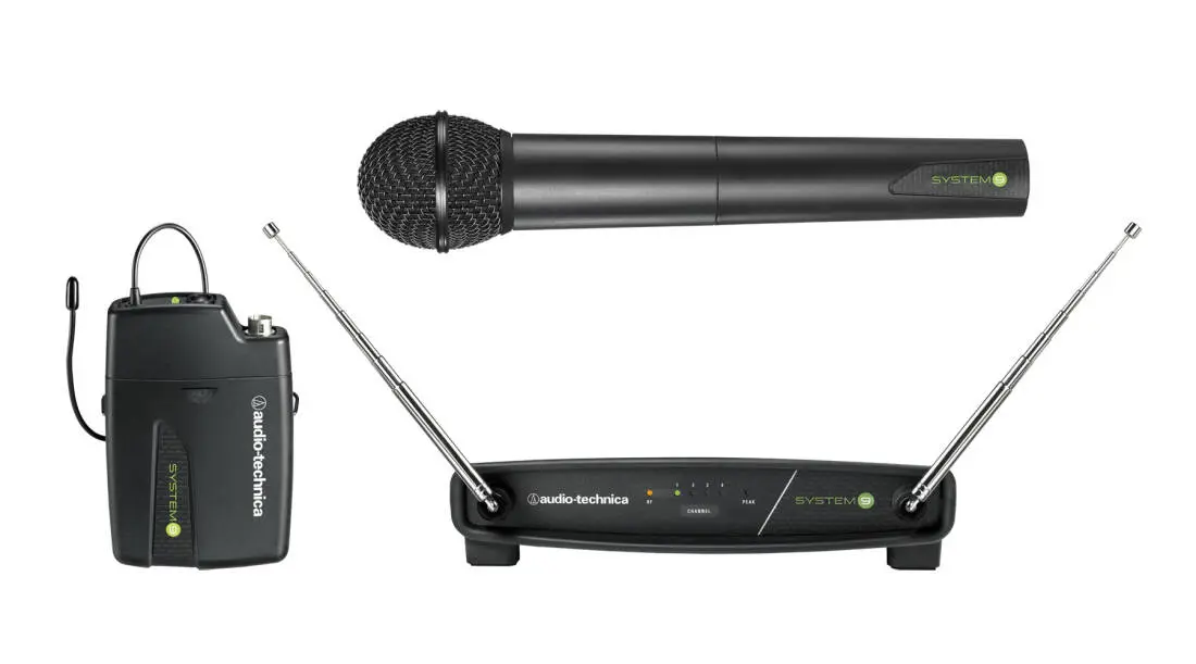 Each System 9 configuration includes the ATW-R900a receiver and either a body-pack transmitter or handheld microphone/transmitter. The ATW-R900a is a non-diversity, single-channel receiver with advanced dipole antenna design for extended operating range, which improves operation by providing a ground element in addition to the usual signal element. The ATW-R900a also offers volume control along with AF Peak, RF and Power indicator lights.