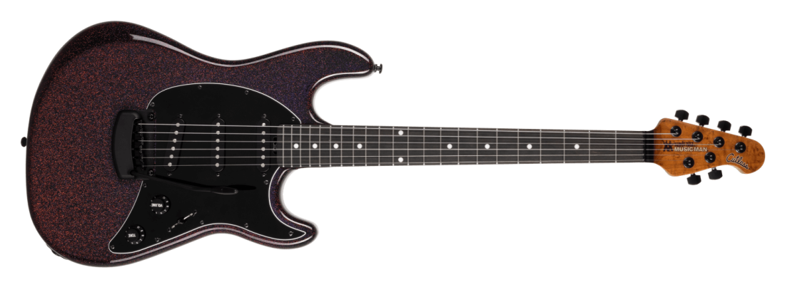 - Bridge: Music Man® Modern tremolo with crescent cover and vintage bent steel saddles