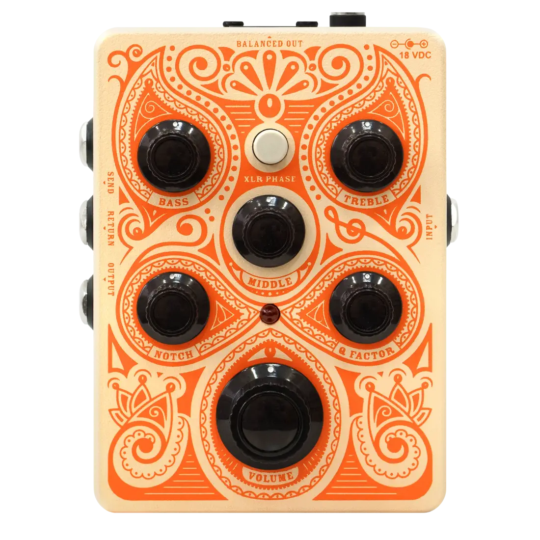 Features- Low noise JFET preamp, EQ with Notch control, buffered FX Loop, balanced XLR output with phase reverse switch