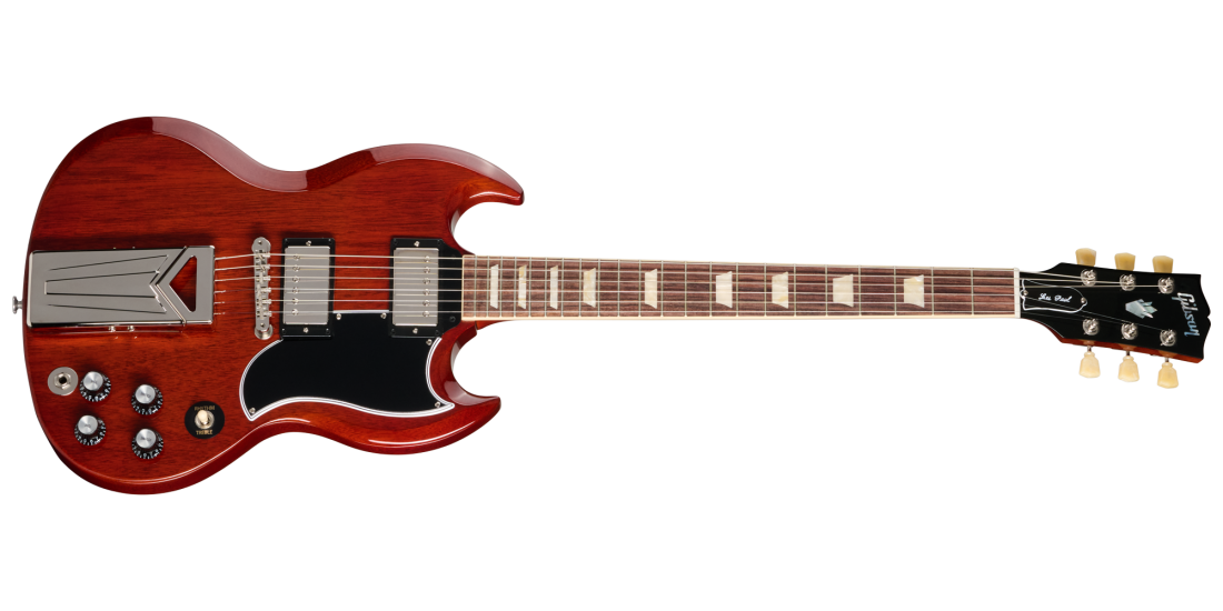 This limited-edition instrument pays tribute to the legendary '61 SG, with its unmistakable double-cutaway silhouette and pronounced bevels that evoke generations of rock storytelling. Its SlimTaper™ neck, carved from mahogany, invites expressive playing along a rosewood fretboard fitted with 22 medium jumbo frets and accented by glowing acrylic trapezoid inlays. A Graph Tech® nut partners with Gibson Vintage Deluxe tuners with keystone buttons to deliver exceptional tuning dependability.