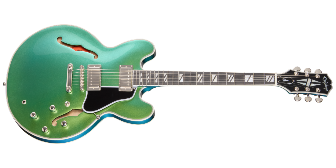 The Futura ES-355 is powered by a pair of Epiphone's new ProBucker™ Ignite humbuckers™, delivering dynamic, articulate tone with plenty of clarity. Push/pull volume and tone controls unlock coil-splitting and phase options for maximum versatility. Available in three stunning Chromashift finishes-Firestorm Shift, Dragonfly Shift, and Midnight Ember Shift-this guitar is designed to make an impression on stage or on screen. Whether you're after a modern aesthetic, a wide tonal palette, or a high-quality semi-hollowbody, the Futura ES-355 is ready to inspire. Each one ships with a premium gig bag, so it's prepared to go wherever your music takes you.