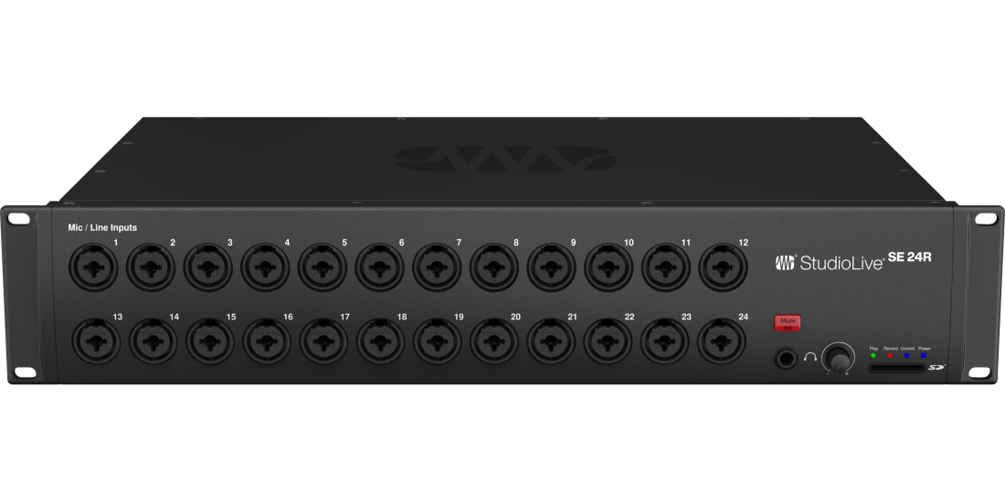 The StudioLive SE 24R delivers full-scale mixing power in two rack spaces. With 24 XMAX-R preamps and 16 FlexMixes, plus 4 subgroups, 4 dedicated FX mixes, and 24 DCAs, this mixer manages large channel counts effortlessly. Integrated USB 64x64 audio interface, onboard SD capture, and Capture software with Virtual Soundcheck streamline recording and playback.