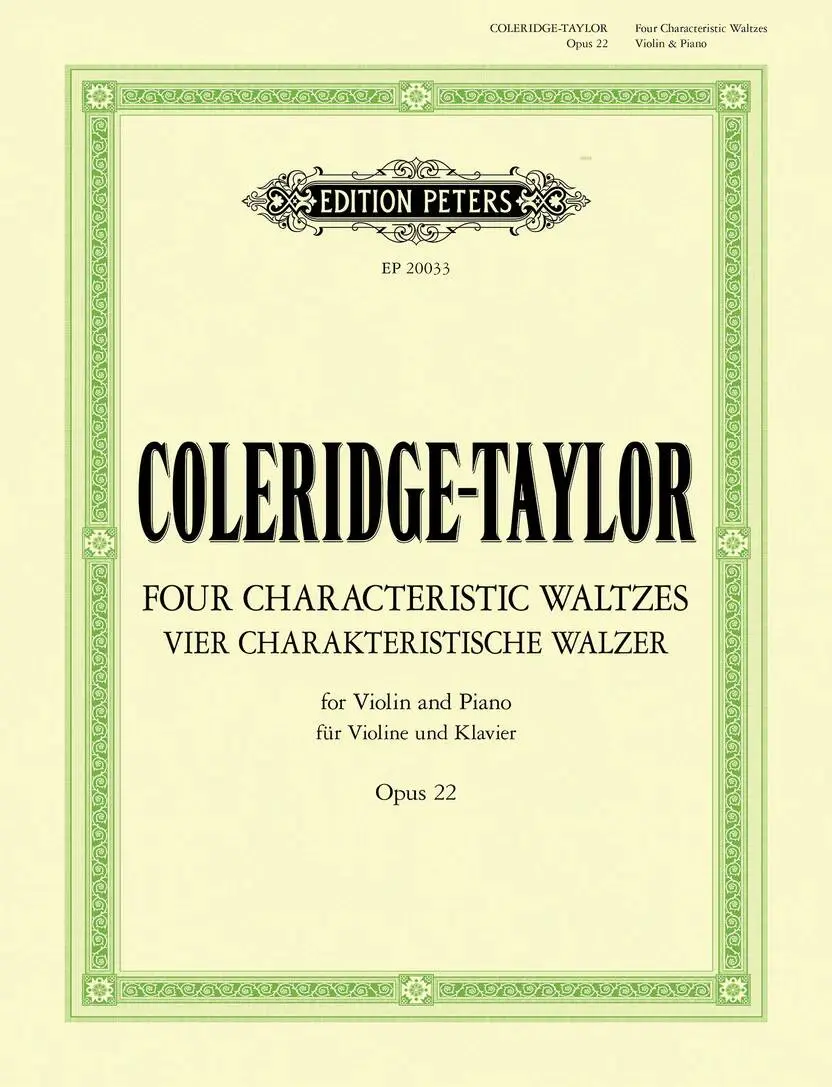 As the illegitimate son of an English woman and a man from Sierra Leone, Samuel Coleridge-Taylor overcame the constraints of Victorian society to become an acclaimed composer and a symbol of hope for racial equality, earning international fame during his lifetime. His Four Characteristic Waltzes, Op. 22, originally written for orchestra and arranged here by the composer for violin and piano, are ideal concert pieces that explore the expressive range of the waltz form: from the Dvorak-inspired Valse bohemienne, through the tender simplicity of the Valse rustique, to the serene Valse de la Reine and the fiery brilliance of the Valse mauresque. Lyrical and idiomatic for violin, with a rich, full piano part, these pieces offer rewarding repertoire for intermediate to advanced players and a delightful rediscovery of Coleridge-Taylor's elegant, expressive style. With an introduction by violinist Maya Magub.