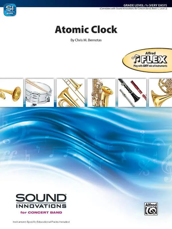 The Atomic Clock is the most accurate timepiece in the world. Atomic Clock, composed by Chris M. Bernotas, is an exciting piece now available in FLEX format. This composition challenges students to be the most accurate performers by maintaining a steady pulse. Using only six notes, the piece generates energy and excitement by incorporating interesting harmonic and melodic tension and release. Students will engage in tactile performance while clapping the beat and playing the melody as it is traded throughout the ensemble. The legato section offers a chance for students to perform expressively before the powerful melody and rhythm drive the piece to a dynamic conclusion.