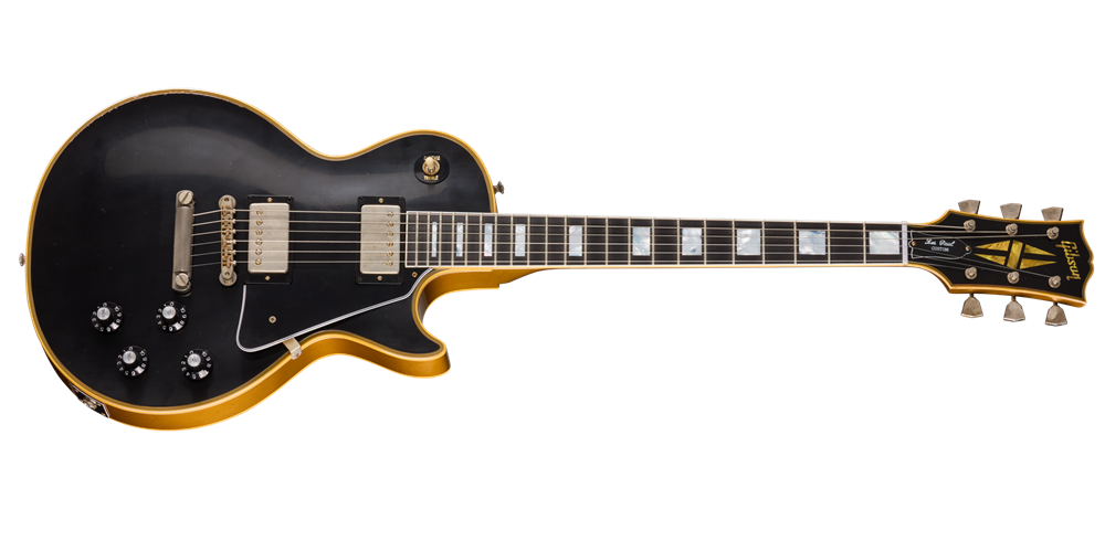 Nickel hardware complements the aging and finish, anchored by an ABR-1 Tune-O-Matic™ bridge and Stop Bar tailpiece for dependable intonation and resonance. Kluson® Waffleback® tuning machines complete the historically accurate and unmistakably Custom aesthetic. Black plastics, black Witch Hat knobs, and the unmistakable headstock adornments, including the Gibson logo and Custom split diamond rendered in mother of pearl, underscore its refined character.