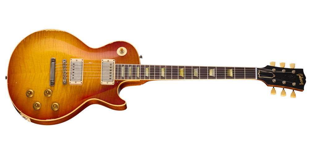Aged nickel hardware, including an ABR-1 Tune-O-Matic™ bridge, Kluson® Deluxe tuning machines, and a Stop Bar tailpiece, brings a classic presentation and reliable performance. Cream plastics, gold Top Hat knobs, and aged nickel pickup covers complete a look that honors the late-50s era with precision. Each Limited Edition 1959 Les Paul Standard Reissue, Heavy Aged, Molten Amber Burst includes a Certificate of Authenticity and comes housed in a Lifton™ reissue hardshell case.