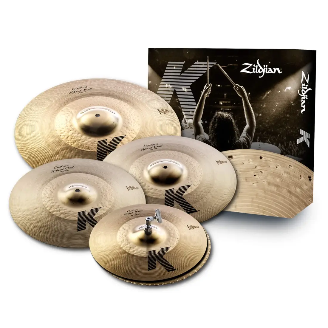 - 14 1/4" K Custom HiHats- 16" K Custom Hybrid Crash