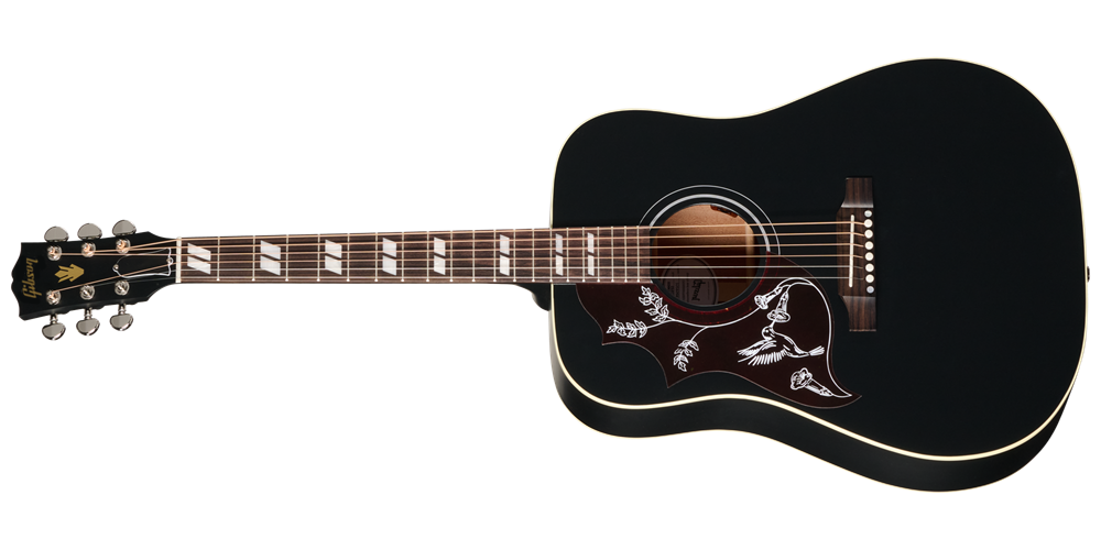 The neck has a comfortable Round profile, and the rosewood fretboard has a 12" radius and features pearloid parallelogram inlays, which is one of the visual hallmarks that makes the Hummingbird easily recognizable. The fretboard is fitted with 20 standard frets. The traditional belly-up rosewood bridge is equipped with a TUSQ® saddle, and the nut and bridge pins are also TUSQ. High-quality Grover® Rotomatic® tuners ensure rock-solid tuning stability. The pickguard features a simplified version of the world-famous Hummingbird pickguard graphics.