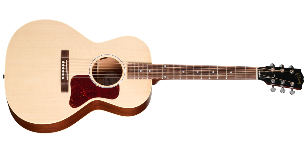 Both the top and back feature single-ply binding around the perimeter. The narrower waist of an L-00 body shape provides a focused and nuanced sound, naturally giving it a leaner and tighter bass response that sits perfectly in the mix. The tone is ideal for fingerstyle playing and blues and works very well for other genres and playing styles, too. The utile neck is attached to the body with a compound dovetail neck-to-body joint, and like all Gibson acoustic guitars, it is affixed with hot hide glue. The neck has a comfortable and fast-playing SlimTaper™ profile, and the rosewood fretboard has a 12" radius and is adorned with simple mother-of-pearl dot inlays and is fitted with 19 standard frets. The closed slot rectangular rosewood bridge is equipped with a TUSQ® saddle, and the nut and bridge pins are also TUSQ. Smooth turning Grover® Mini Rotomatic® tuners ensure solid tuning stability.