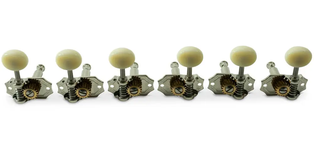 Kluson 3 Per Side Prestige Series Vertical Mount Open Bronze Gear Tuning Machines - Nickel with Parchment Plastic Buttons