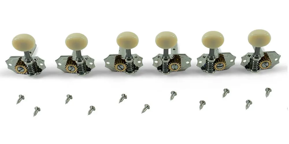 Kluson 3 Per Side Prestige Series Horizontal Mount Open Bronze Gear Tuning Machines - Nickel with Parchment Plastic Buttons