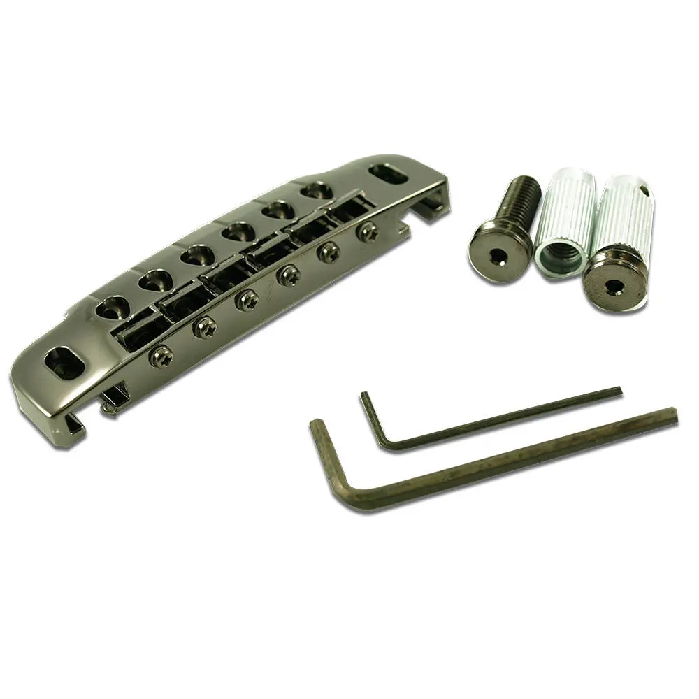 A very elegant combination bridge/tailpiece from Gotoh®. This bridge is basically a modern day version of the Badass and features a patented 'stud lock' system, which prevent the bridge from falling off when restringing.
