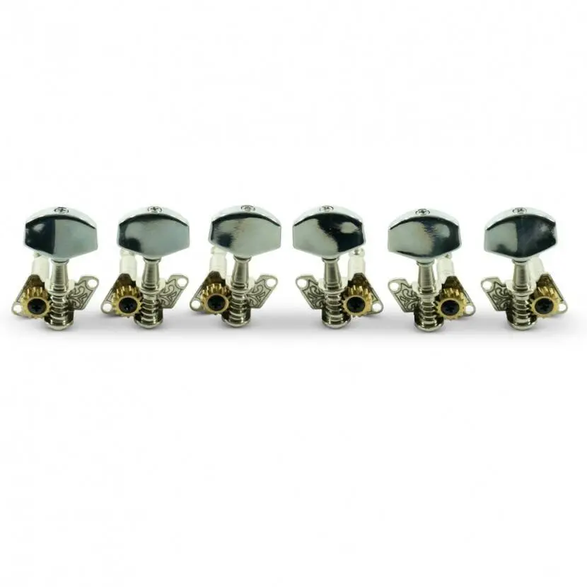 DepartmentsGuitarsGuitar Accessories, Parts & ToolsGuitar and Amplifier PartsGuitar Hardware WD Music 3 Per Side Open Back Steel String Tuning Machines - Chrome with Plated Buttons