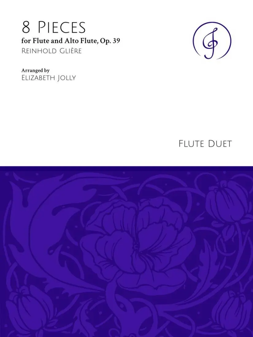 Reinhold Gliere's Eight Pieces, Op. 39, originally for violin and cello, is a charming set of character pieces showcasing lyrical melodies, rich harmonies, and lively interplay between the instruments. In this flute duet arrangement for C flute and alto flute, each movement offers a distinct mood, ranging from playful dances to introspective lyricism. This collection showcases Gliere's Romantic style blended with folk-inspired elements in an intimate chamber music setting, suitable for intermediate to advanced flutists.