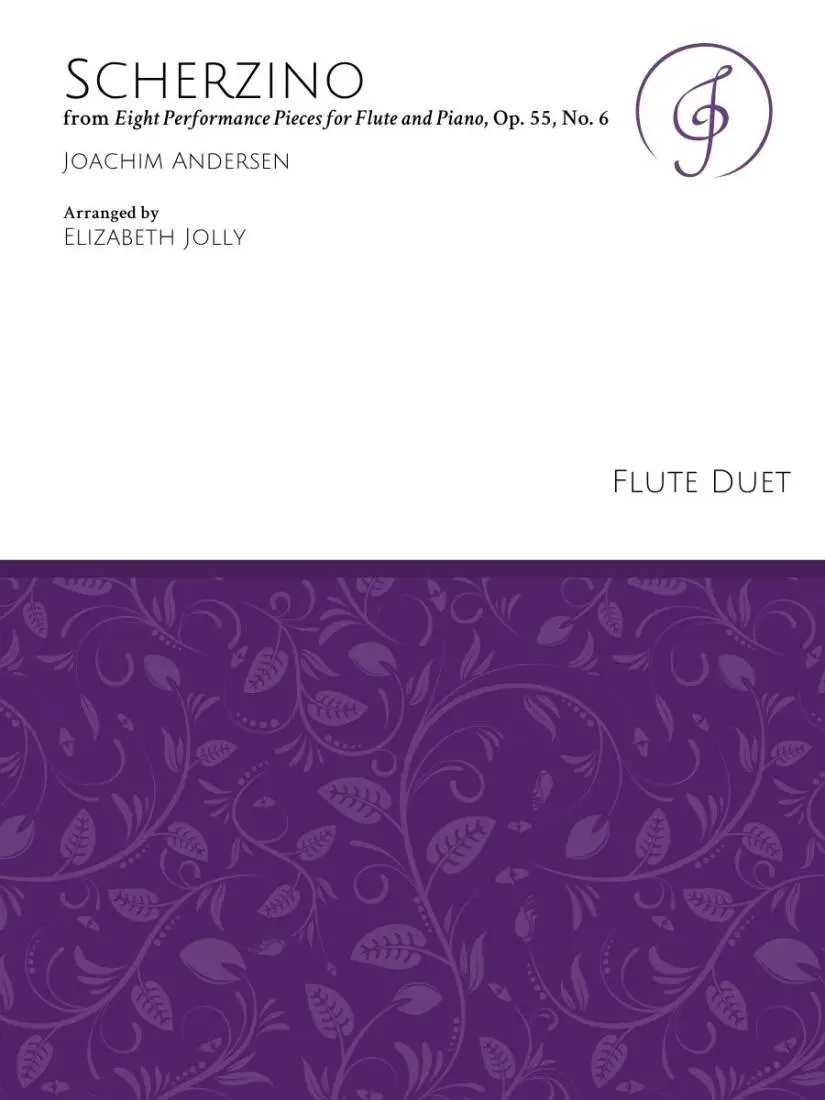 Joachim Andersen (1847-1909) was a Danish virtuoso flutist, composer, and conductor. A co-founder of the Berlin Philharmonic, he played a key role in shaping modern flute technique through his extensive pedagogical works. Scherzino (from Eight Performance Pieces, Op. 55 No. 6) is a lively and playful character piece arranged for flute duet. Andersen's original solo is preserved in the first flute part while the second flute part is adapted from the piano accompaniment. This duet arrangement is ideal for teachers playing with students or for intermediate to advanced flutists who want the fun of playing together without needing a piano.