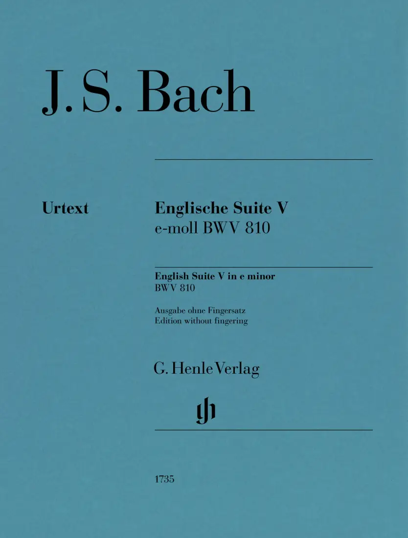 The "English Suites" number among the pinnacles of keyboard literature. They strike a magnificent tone that provides an impressive picture of the virtuosic and sumptuous harpsichord style that Bach had in mind here. In his revision of the "English Suites", editor Ullrich Scheideler was able to draw upon an exceptionally good source situation, even though no autograph has survived. Suite V in e minor BWV 810 is taken from the complete volume HN 1595. It is ideal for studying and teaching. As a special bonus, authentic variants are made available to the player directly in the musical text. The edition contains an extensive preface which discusses in detail the background of the work's genesis and presents a clear overview of the source situation. An ideal introduction to the cosmos of Bach's "English" suites!
