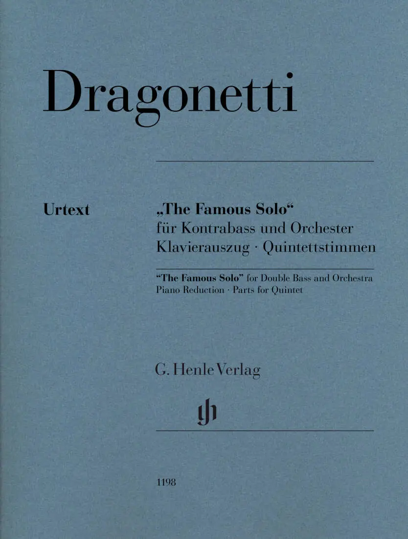 It is a bit of a paradox: one of Dragonetti's favorite pieces and also his showpiece, "The Famous Solo," originally for double bass and orchestra, is largely unknown today. This cannot be down to the virtuoso work itself, but is more likely due to the unclear source situation with its different versions. In this edition Tobias Glockler presents Dragonetti's autograph arrangement for double bass and string quartet for the first time. For those who would like to study the orchestral version, there is also a piano reduction, based on a contemporary model. Using this edition, the "Famous Solo" can be performed as needed in the solo and orchestral tuning - piano scores and quartet parts in e minor and f sharp minor are also included.