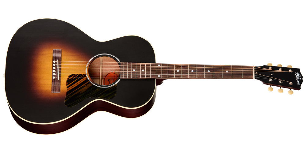 The headstock showcases open-back Golden Age strap tuners with cream buttons and an early-1900s-style Gibson script logo decal for an authentic vintage look. Complementing this are period-inspired touches such as the sloped-rectangle closed-slot rosewood bridge. The guitar is completed with a bone nut and saddle, TUSQ® bridge pins, a classic L-00-style pickguard, and a hand-applied satin nitrocellulose lacquer finish. Each instrument ships in a premium Century Collection tweed hardshell case and is offered in both right- and left-handed configurations. Experience the distinctive character and inviting resonance of a Gibson parlor acoustic with the L-00 Century 12-Fret.