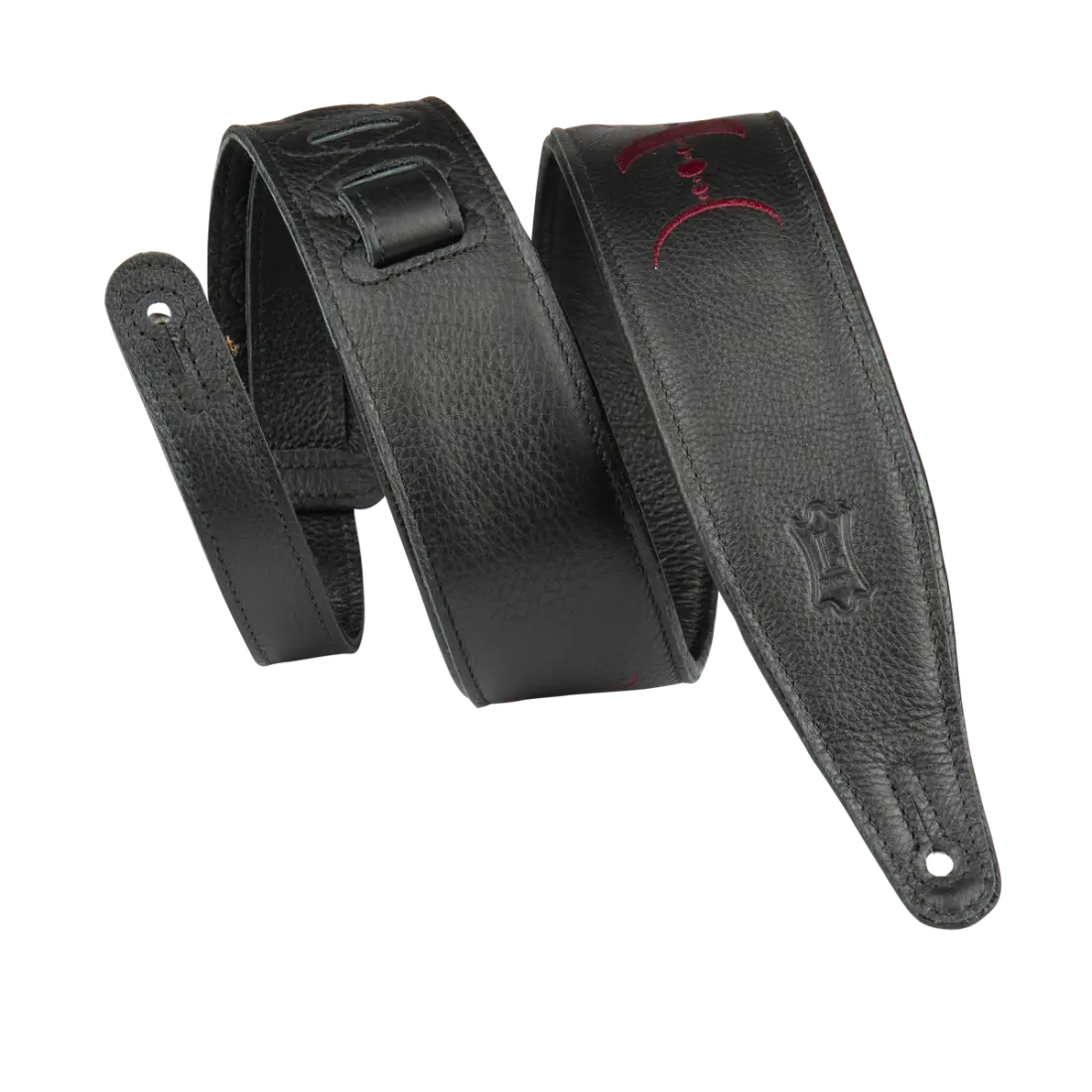 This Levy's Moon Phases strap is 2.5 inches wide and built with soft black garment leather. Along the length of the strap is an embroidered depiction of the phases of the moon. Available in 3 embroidered colours - Brown, Black, Green and Burgundy.