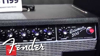 The Bassman 500 combines Fender's world-standard '60s black panel tube preamp with a lightweight 500 watt Class D power amp. Its dual-channel design uses modern technology to maximize classic technology, with classic Fender mid-'60s styling and a wealth of innovative features on the front and rear panels. A vintage channel that delivers the full, warm sound of classic Fender amps with passive tone stack and an overdrive channel that delivers the aggressive and responsive sound of a modern active tone stack (choose between channels with included footswitch). The Bassman 500 mates perfectly with Bassman Pro Series Neo speaker cabinets and Rumble V3 410/115 cabinets.