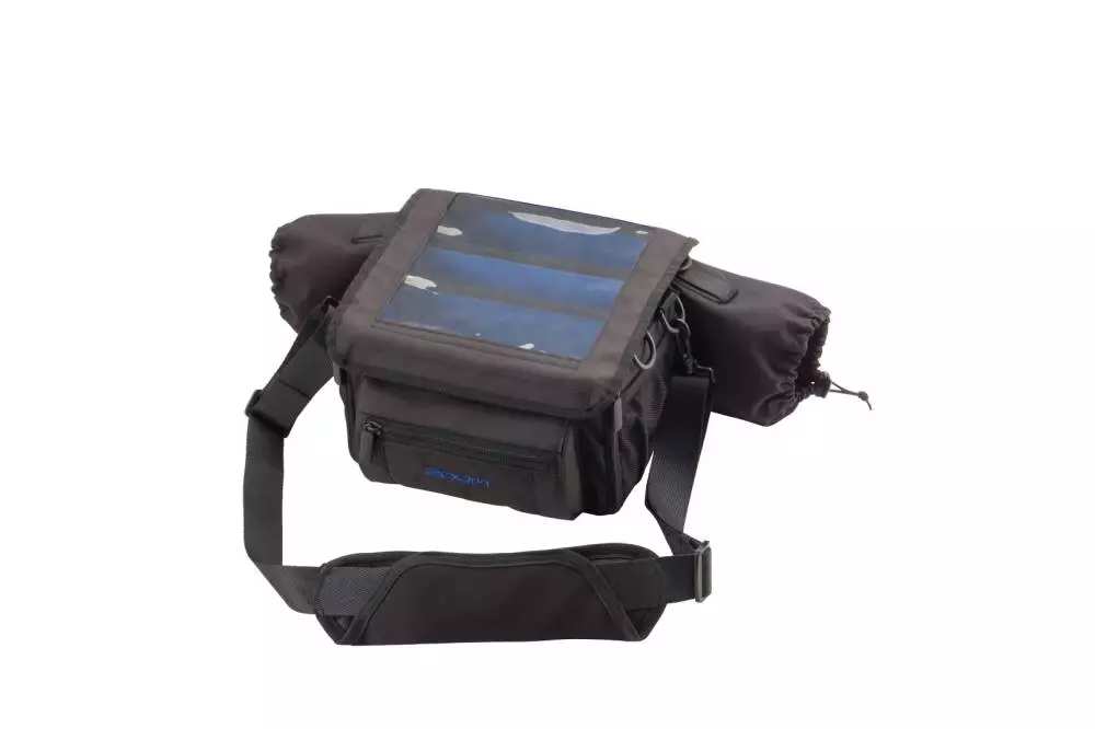 Drawstring sleeves on the sides allow you to access your F8's inputs and outputs while protecting them from the elements. You can keep accessories and connectors in the zippered front pouch and side pockets while storing mics and cables in the main compartment. The bottom of your F8 is accessible through a velcro flap underneath the bag, which can also be configured for additional cable routing.