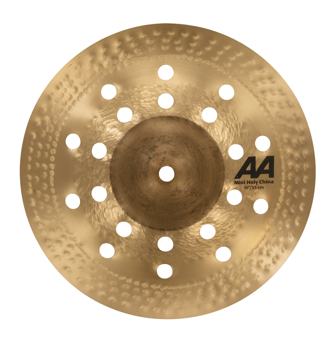 With all the volume, trash and cut of the Holy China but in a China Splash format. With its exaggerated high profile, single row of holes and raw bell, the 10" AA Mini Holy China cuts better than any other cymbal its size. This special design delivers the type of high-end white noise that is typically associated with larger cymbals. That's because more trash equals less tonal character and more white noise in the cymbal's sound, resulting in boosted cut. Think of it as a mini-monster of volume and cut. SABIAN is committed to creating the widest, most innovative range of sounds on the planet, giving drummers more choice in creating their sound.