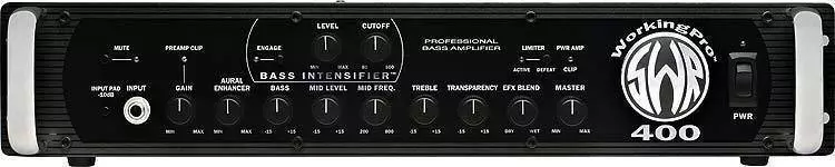 Features: 400 watts @ 4 ohms, classic SWR preamp with Aural Enhancer, Bass Intensifier circuit, four-band Active EQ with variable midrange, tuner send with tuning mute switch, studio-quality XLR out with ground lift and level pad, automatic limiter with defeat option, effects loop with blend control, stereo headphones out, dual Speakon and 1/4 speaker outputs, two-button footswitch included (Bass Intensifier/tuning mute)