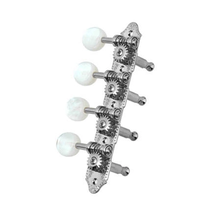These new, professional model mandolin machine heads are the latest in technology. A specially designed, adjustable worm gear along with the die cast base maintains the center lines of the gear and worm to insure correct alignment for the finest tuning possible. The worm to gear ratio is 18:1. Screws and bushing provided.