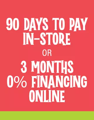 90 Days to Pay in store or 3 months 0% financing online through Flexpay