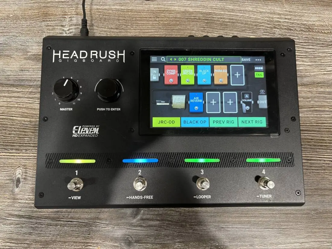The heart of the HeadRush Gigboard is the 7-inch touch display and a guitarist-centric, ultra-intuitive user interface literally touch, swipe and drag-and-drop to instantly create and edit rigs with amazing speed and accuracy. The large display also gives clear feedback when performing live, especially when tweaking tones using the footswitches in 'Hands-Free Mode'. Everything about the HeadRush Gigboard is designed to make it simple, fast and intuitive to jump right in and create amazing sounding rigs in seconds.