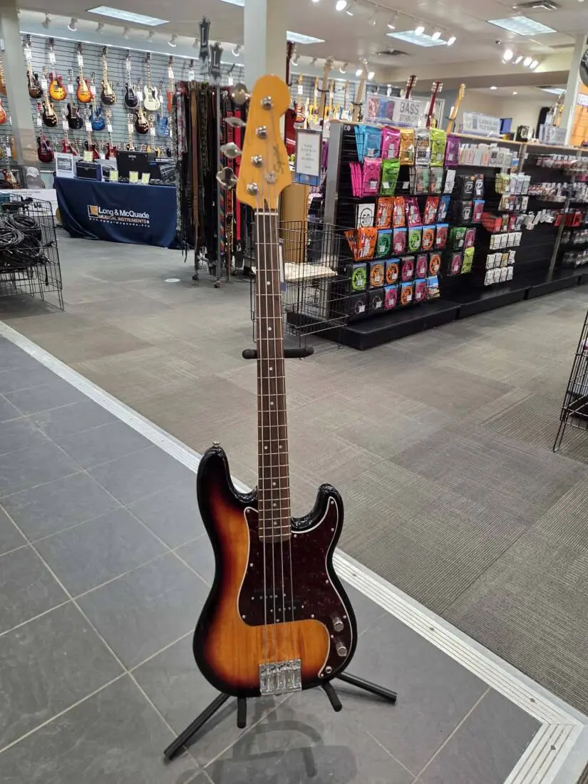 A tribute to the decade that made the P Bass® an icon, the Classic Vibe '60s Precision Bass embodies the aesthetics of the original and produces massive tone courtesy of its Fender-designed alnico split-coil pickup. Player-friendly features include a slim and comfortable "C"-shaped neck profile with an easy-playing 9.5"-radius fingerboard and narrow-tall frets, as well as a vintage-style bridge with threaded saddles. This throwback Squier model also features 1960s inspired headstock markings, nickel-plated hardware and a slick vintage-tinted gloss neck finish for an old-school aesthetic vibe.