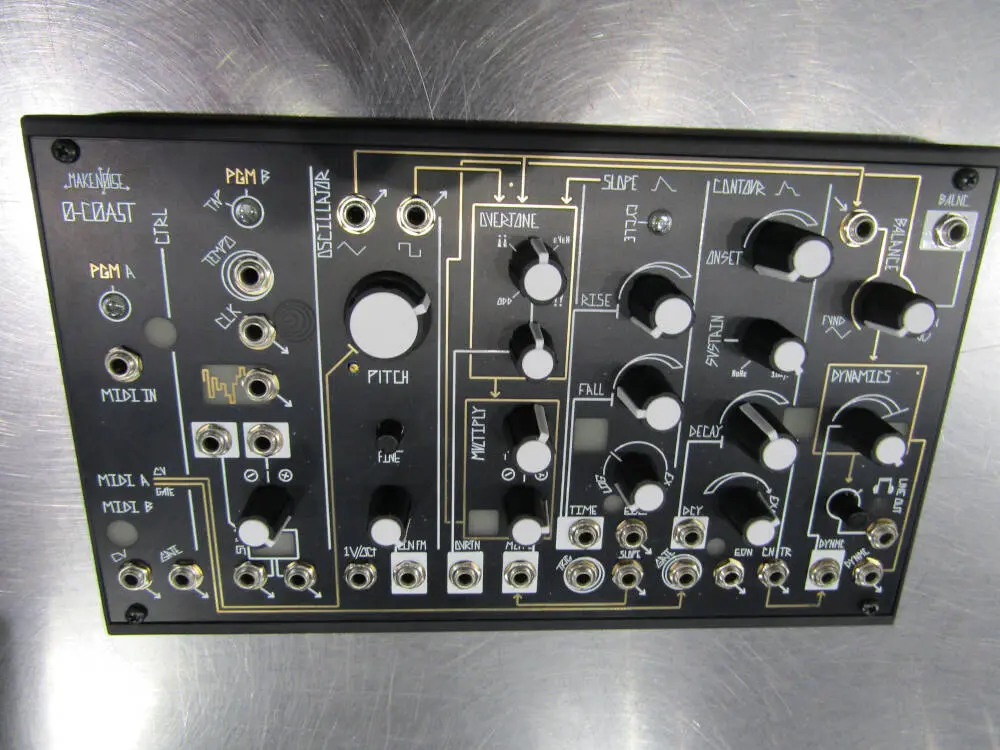 While the 0-COAST utilizes classic modular synthesis techniques, it was designed to operate with or without the use of patch cables. The necessary connections have been made from circuit to circuit so it operates as an expressive, musical MonoSynth. Using only the MIDI controller of your choice you could apply new timbres to your existing musical forms!
