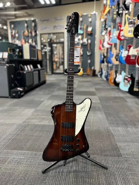 No other bass looks like it or plays like it. The beloved Thunderbird bass from Epiphone features the reverse body styling, carved top and dual bass TB Humbucking pickups complimented with black hardware and the Thunderbird insignia on the pickguard.
