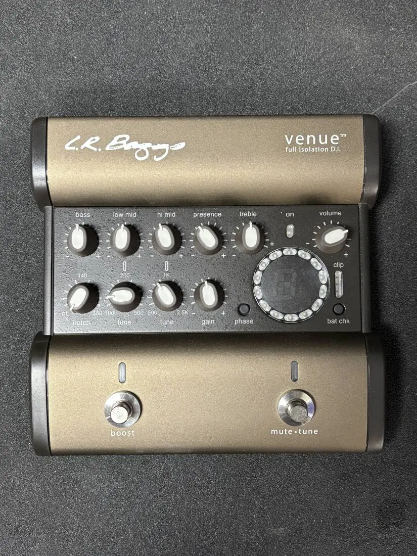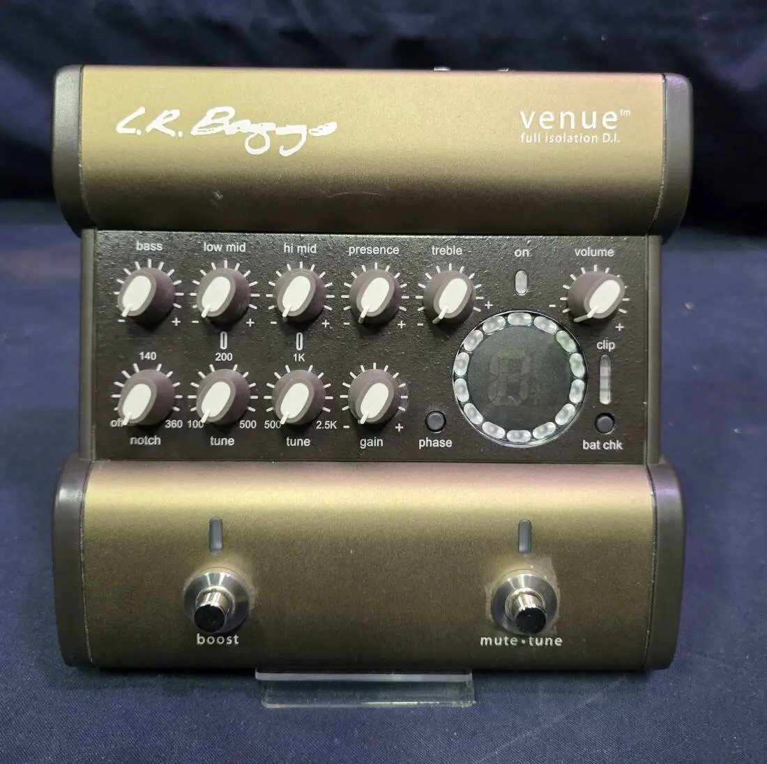 The Venue DI is an acoustic preamp that combines a transformer-coupled DI output for maximum isolation, an EQ specifically tuned for acoustic instruments, a volume boost footswitch to complement your playing styles, and an easy to read chromatic tuner with a mute/tune footswitch. Combining the features from 3 stompboxes into 1, the Venue DI brings a new level of fidelity and usefulness to performing acoustic musicians. Assembled in the USA with 100% quality control testing.