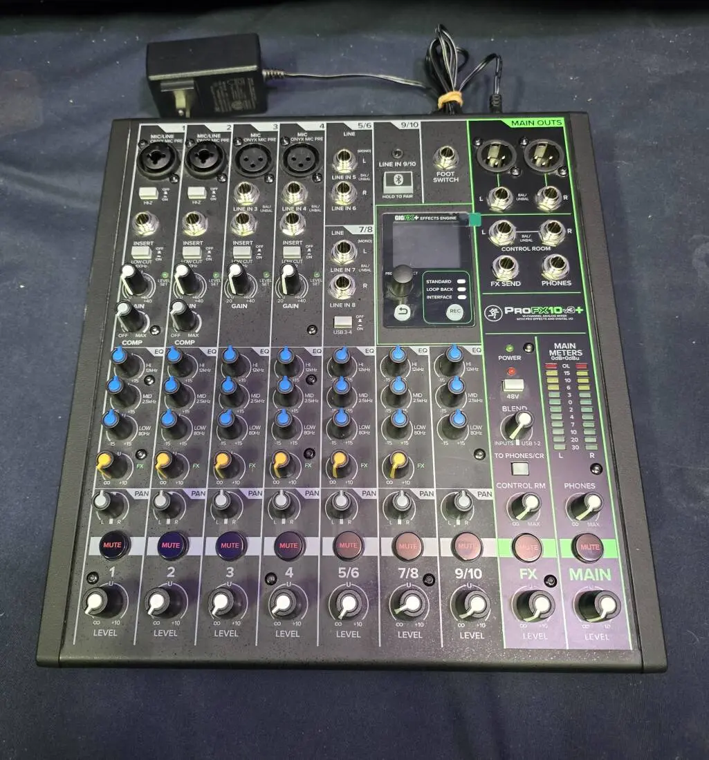 Mackie ProFX10v3+ is a 10-channel professional analog mixer and USB-C audio interface with powerful enhancements for studio-quality recordings and live streams. Capture your performance with award-winning Onyx preamps, channel EQ and analog compression. Upgraded GigFX+ effects enhance your sound, plus you can edit and save your presets on the fly via the full-color display.