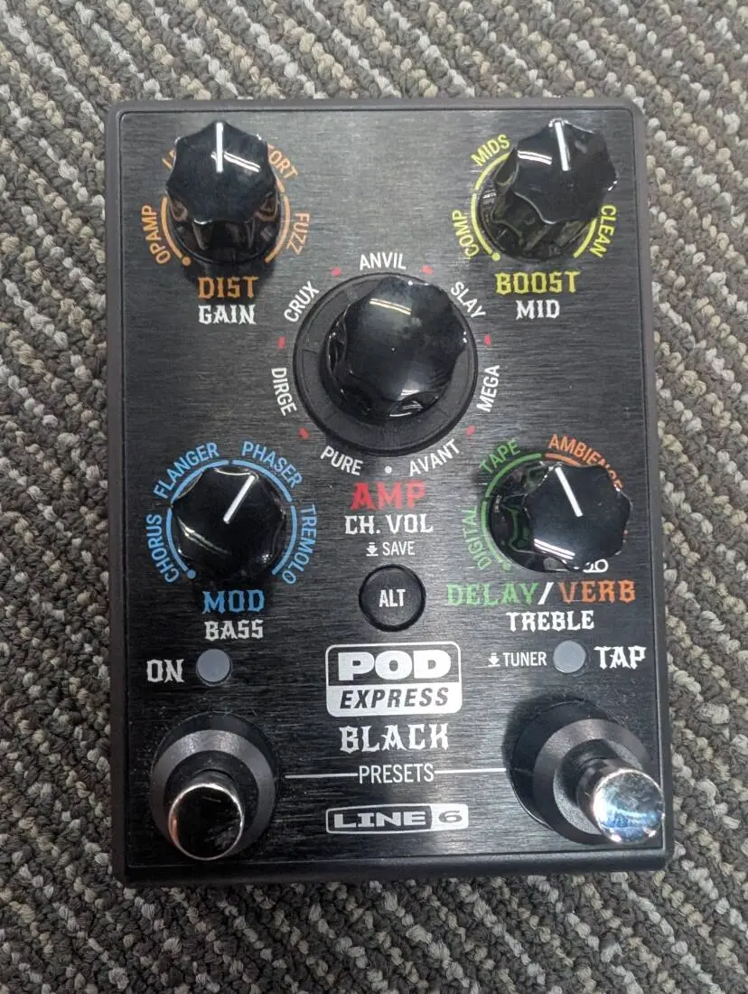 Download the free POD Express Edit app for your computer or mobile device to quickly and easily access a world of deeper tone editing, preset management, and global settings. Additional features include stereo outputs, tap tempo, a tuner, a noise gate, a headphone output, and a USB-C audio interface with re-amping capabilities. Add an optional expression pedal for volume control, or up to two footswitches to select presets or turn effects on and off.