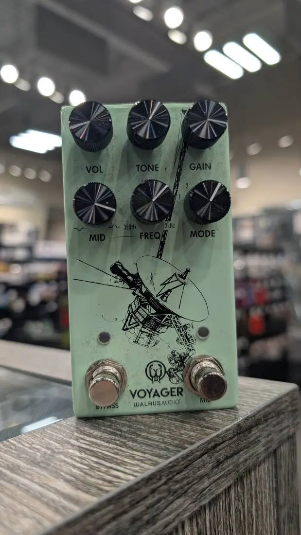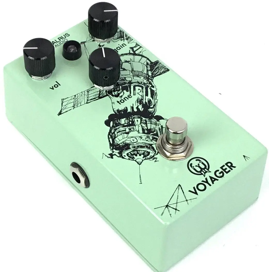 The Voyager is a gain/preamp overdrive that boasts a full spectrum of tone from any setting on its simple set of controls. From its lowest to highest settings, the Voyager provides a uniquely superb amount of clarity to any style of playing. At lower gain settings, it brightens the signal and adds clarity to each note played. With the gain turned up, the Voyager transforms into a thick overdrive, providing depth to chorded playing while retaining the clarity needed to break through on solos. Has True Bypass switching.
