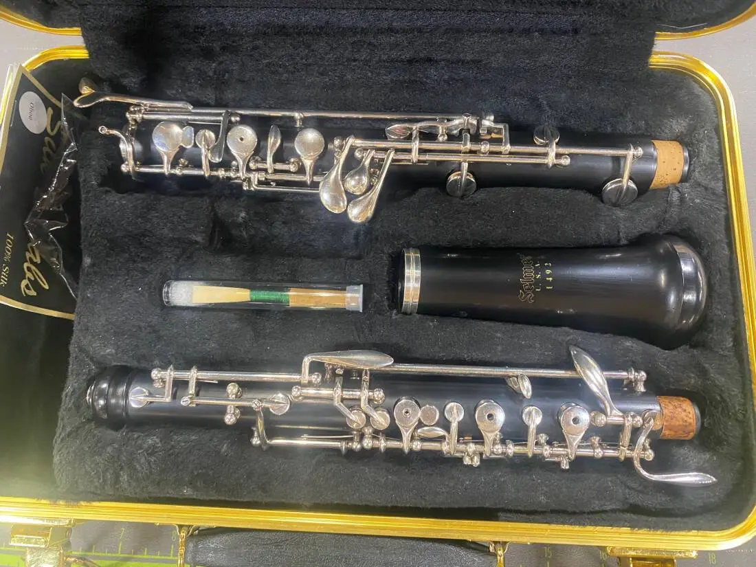 The 1492B oboe is perfect for the beginning oboist. Featuring a high-impact plastic body, silver plated, basic conservatory key system with newly designed French arms and contoured cork pads, this is a student level oboe with response like no other. Includes a double-wall hardshell case.