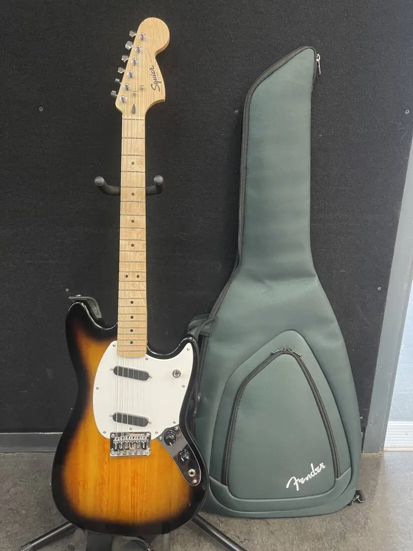 The Squier Sonic™ Mustang® is ready to launch any musical adventure into warp speed, offering iconic Fender® style and inspiring tone for players at any stage. This Mustang® sports a slim and inviting "C"-shaped neck profile and a thin, lightweight body for optimal playing comfort while a pair of Squier® single-coil pickups chime with crystal clarity for a wide variety of versatile tones. Further details of this model include a short 24" scale length, 6-saddle hardtail bridge for reliable intonation, sealed-gear tuning machines for smooth, accurate tuning and durable chrome-plated hardware that is sure to catch the spotlight.