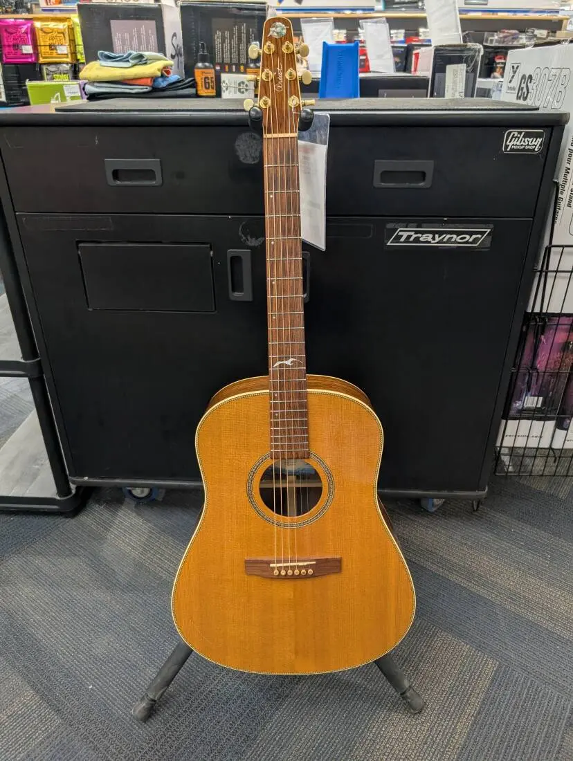 A magnificent 2007 Seagull Artist Studio (Model 21819), the flagship of the Quebec brand. Unlike more recent models, this one is a purely acoustic version (without original electronics), which preserves the structural integrity of the wood and offers optimal resonance.