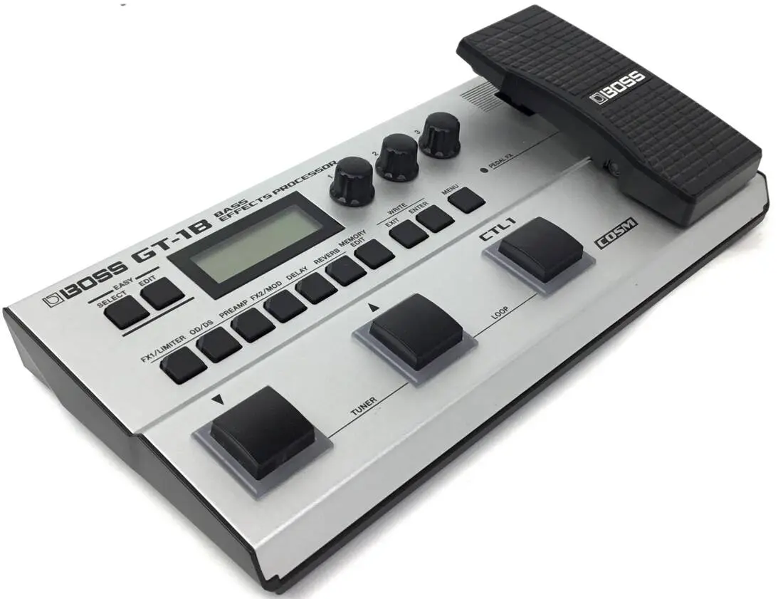 The GT-1B gives bass players a massive range of pro tone-shaping power in a small and robust package. Backed by BOSS's flagship sound engine, you have full access to a huge selection of bass-optimized amps and effects for stage and studio playing. The streamlined interface lets you dial in sounds fast, while the onboard control switch and expression pedal enable you to adjust multiple effects in real time. And by connecting to BOSS TONE CENTRAL, you can download new patches, editing software, and more. Compact, rugged, and battery powered, the GT-1B is the ultimate mobile tone companion for every bassist.
