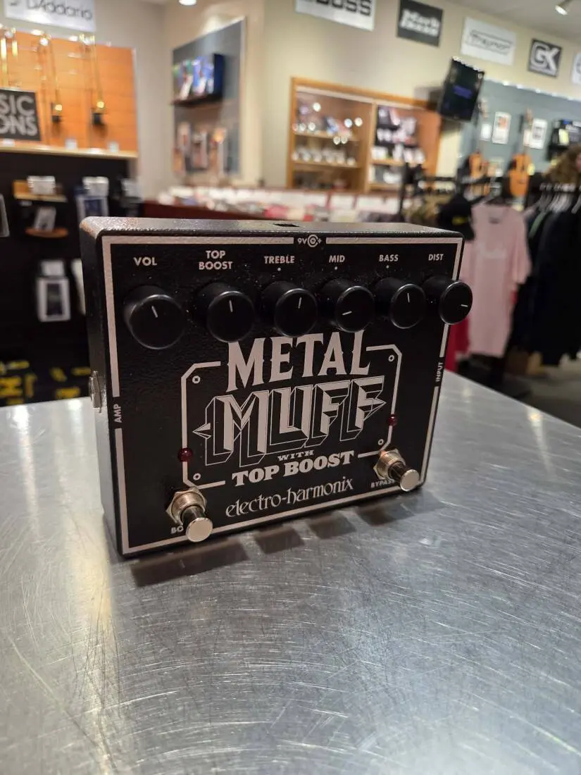 The ultimate metal distortion pedal. Three powerful EQ bands sculpt the mids and 6 controls shape the sound precisely for your groove from slithering mercury to lead belly blast furnace dross. Its unique Top Boost adds serious bite with its own control knob and footswitch so you can kick it on for searing leads.