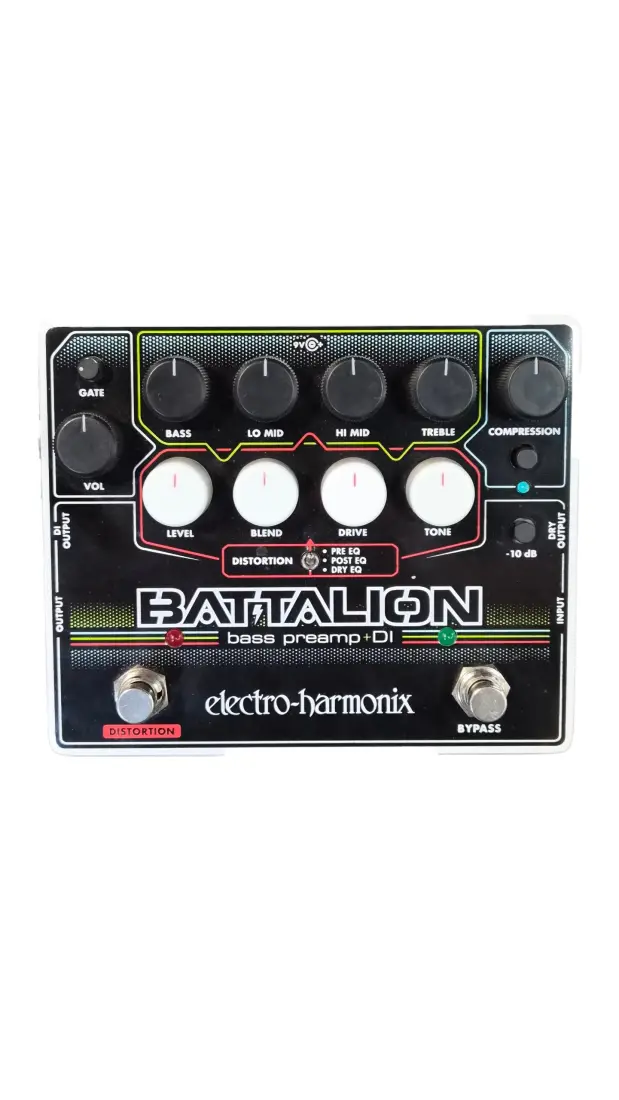 The Battalion Bass Preamp and DI is a compact, flexible pedal that delivers powerful tone shaping capabilities in a rugged pedalboard-friendly package. The Battalion is loaded with features that will appeal to tone conscious bass players and includes a four-band equalizer, fully-featured MOSFET distortion section with three signal path options, a compressor, a noise gate and comprehensive I/O.